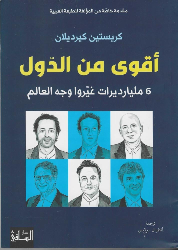 كتاب "أقوى من الدول" هو عمل مثير يكشف عن كيف أن ستة من كبار رجال الأعمال، بيل غيتس، وإيلون ماسك، ومارك زوكربيرغ، وجيف بيزوس، ولاري بيج، وسيرغي برين، قد تحوّلوا إلى قوة تتجاوز الحكومات وتتحكم بمصير البشرية. الكتاب يتناول مسيرة هؤلاء المليارديرات وطرقهم لتحقيق ثرواتهم الهائلة، مما يجعلهم أقوى من الدول وفوق أي مساءلة. الكتاب متاح للشراء من دار الساقي، ويتميز بترجمة أنطوان سركيس.